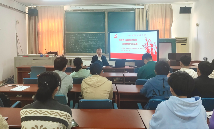 10月27日下午,beat365官方网站党委在励行楼302会议室举办“学党史、汲取奋进力量”专题党课,院党委书记姜永杰为全体入党积极分子进行党史宣讲。
