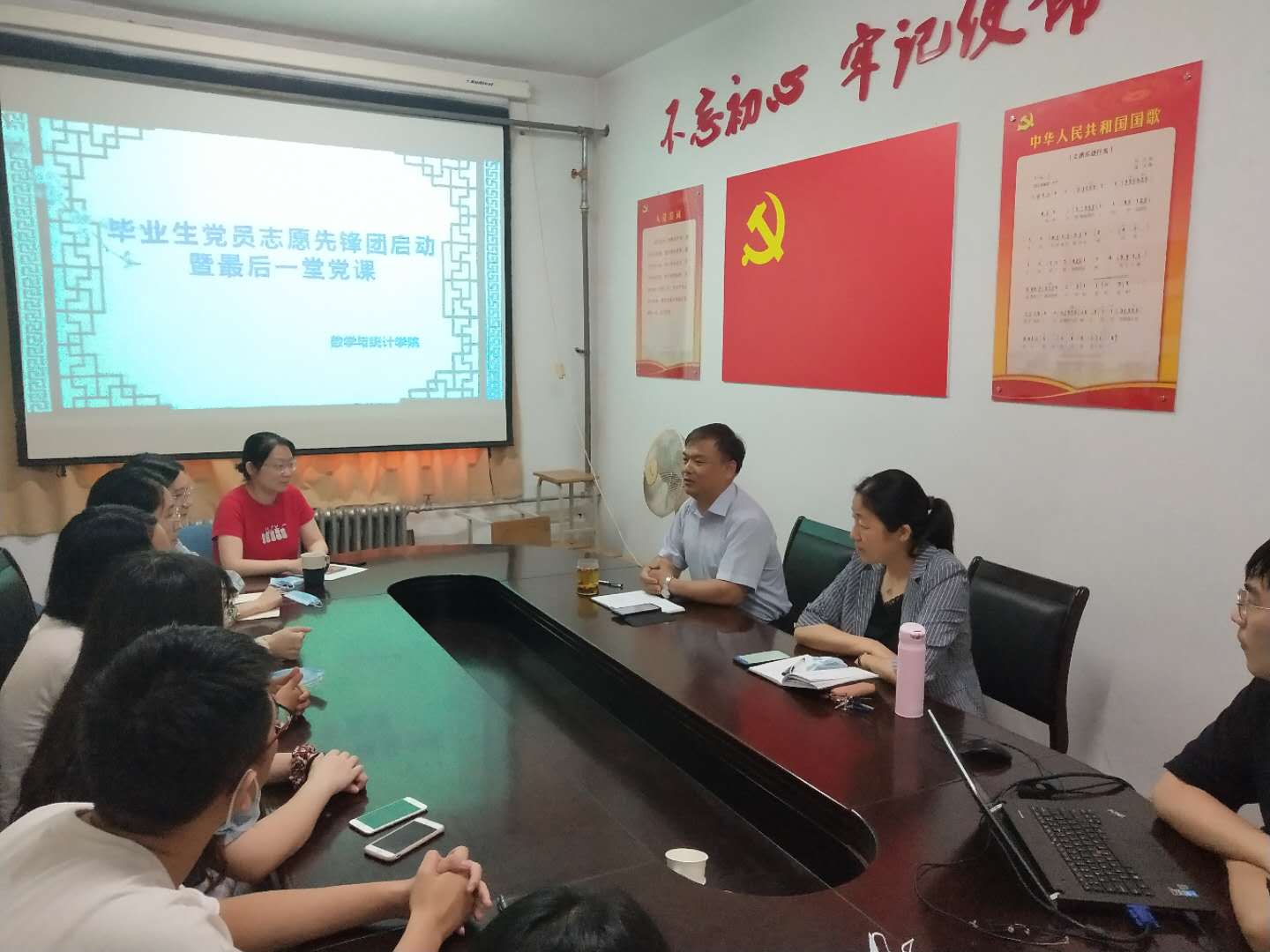 6月12日上午,beat365官方网站学生党支部举办“毕业生党员志愿先锋团启动暨最后一堂党课”活动。学院党委书记姜永杰、党委副书记张雪蕾、支部书记王彦及全体在校毕业生党员参加,活动由支部书记王彦主持。