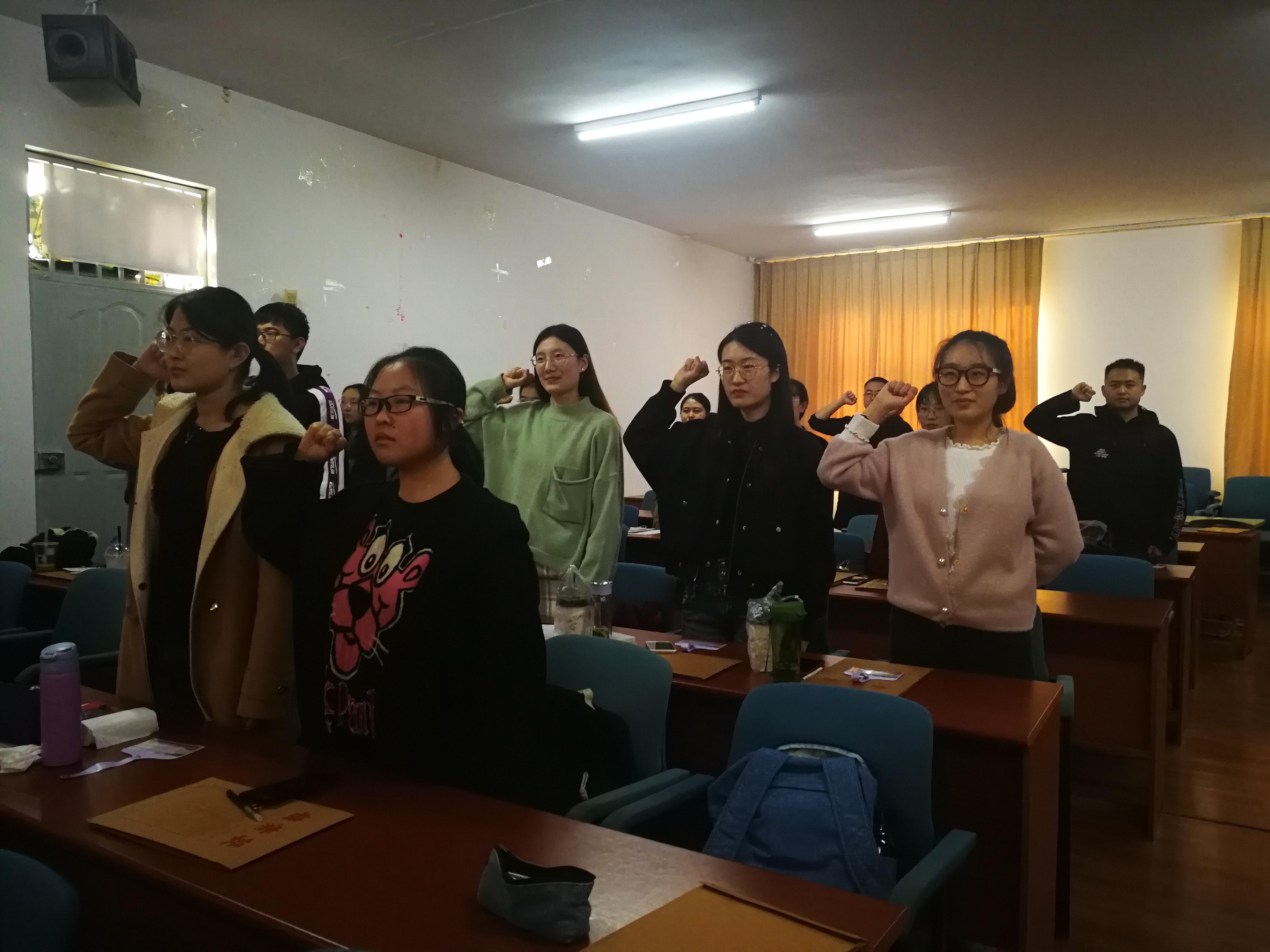 学院党委副书记张雪蕾讲话并对全体学生党员提出四点要求。首先,通过“擦亮身份”,增强党员的荣誉感、责任感,进一步规范言行、接受监督,“不忘初心、牢记使命”;其次必须做到严格自我要求,党员身份,不仅仅体现在组织上入党,更要在思想和行动上入党;第三,党员同学要以身作则,在各个岗位,时刻发挥先锋模范作用。第四,不能放松学习,需要增强自己的政治素养,学好理论和专业知识,提升服务同学、服务社会的本领。最后,大会在全体铿锵有力的党员集体宣誓中落下帷幕。