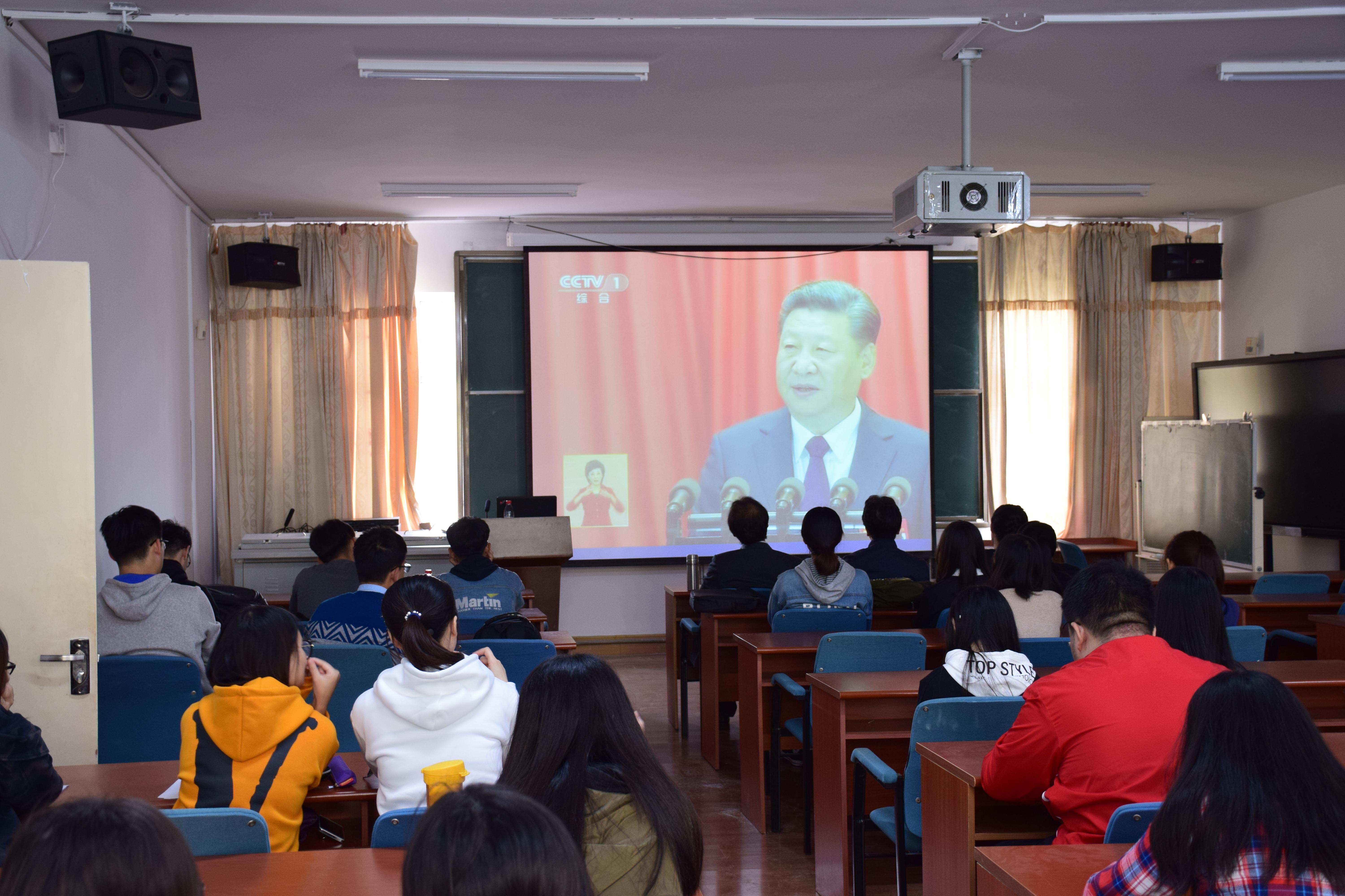 10月18日上午九时,中国共产党第十九次全国代表大会在北京人民大会堂隆重开幕。beat365官方网站党委书记陈学文、院长高红伟、党委副书记张雪蕾及部分师生齐聚励行楼302一起观看了本次大会开幕式的现场直播,共同聆听了习近平总书记的工作报告,同步感受了人民大会堂的庄严气氛和阵阵掌声。