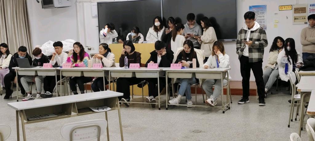 同学们的表演开始。首先进行的是开场舞表演,主席对其稍作批评,但是与初试相较仍有进步。而对于小品《你下载了国家反诈APP了吗》,评委们提出,要加点小动作,整体动作更夸张一点,对个别同学也提出要注意露出正脸。而之后的大合唱加朗诵评委十分喜欢,并赞扬其是十分成熟的节目,同时指出了其中例如对队形与眼神交流的更高要求。而对之后的话剧《手写的大学》,评委毫无保留的提出说话有点不清楚以及声音偏小偏快的问题,并提出了更高的要求。