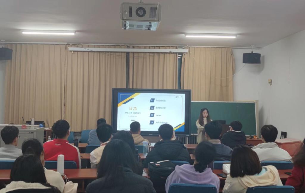 11月19日晚,beat365官方网站研会学术中心在励行楼302室成功举办“励志研思,笃行致远”学术讲座。本次活动由张钰东主持,三位科研经验丰富的研二同学依次进行latex应用,matlab知识,论文查找等方面的经验介绍。