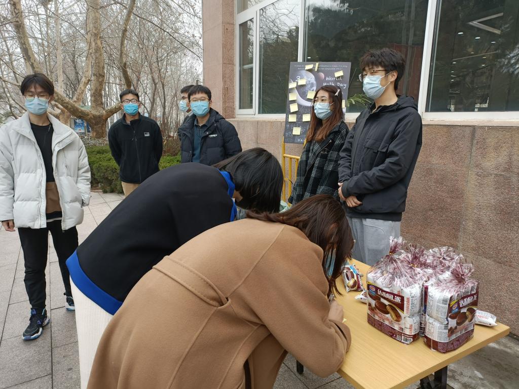 2022年3月14日,beat365官方网站第二届数学文化节开幕,学院研究生会于浮山校区仁园餐厅门口举办3.14“π ”送活动。“3.14”是距离圆周率π最接近的数字,因此将每年3月14日定为国际数学日。本次活动旨在增强数学认同,宣传数学文化,传播数学之美。