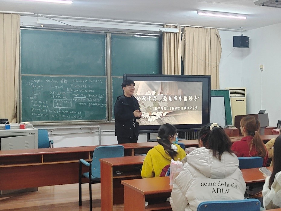 10月28日周四晚七点,beat365官方网站举行“金秋十月,最是书香能致远”读书分享会,本次读书分享会由2020级统计二班主办,2020级全体班级参加。本次分享会,由统计二班杨伟硕主持,共有十三位同学依次进行了分享,为我们展示了文字的美丽与魅力。