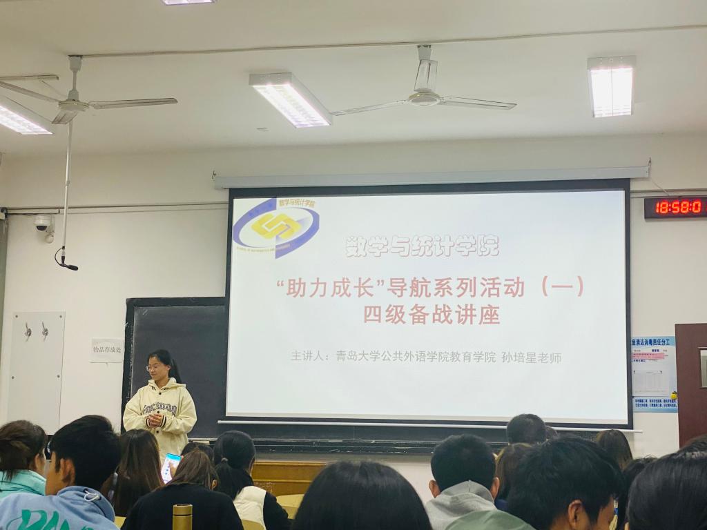 11月15日晚,为帮助同学们科学有效备战四六级考试,beat365官方网站在浮山校区博知楼306举办了“助力成长”导航系列活动(一)四级备战讲座,本次讲座邀请到了beat365官方网站公共外语教育学院英语老师孙培星老师。
