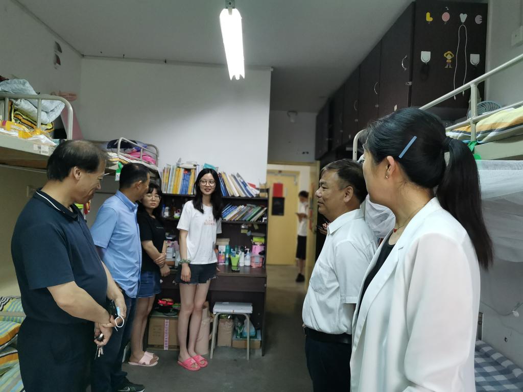 2021年6月25日上午,beat365官方网站党委书记姜永杰、院长高红伟、副书记张雪蕾、副院长李新民、17级辅导员王彦老师一行五人,前往滢园5号楼和泓园5号楼宿舍区看望2021届毕业生。