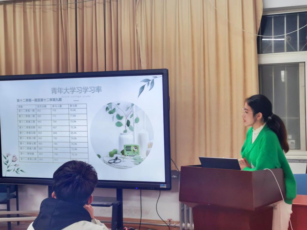 首先,各班班长团支书汇报本学期班级工作完成情况。随后,优秀班集体2019级统计一班班长介绍工作经验,分享大学期间的竞赛注意事项,各学生干部自由提问,由相应代表现场解答。由团委学生副书记沈雅馨讲解团委工作和团支部手册、主题班会记录手册的填写办法以及汇报各班级青年大学习完成情况。最后,进入圆桌讨论环节,各班班长团支书分成应数、统计、应数师三个小组,讨论各班班级情况和所面临的不同问题,相互帮助提出解决方案,并由各小组分派代表发言,分享会议心得感悟。