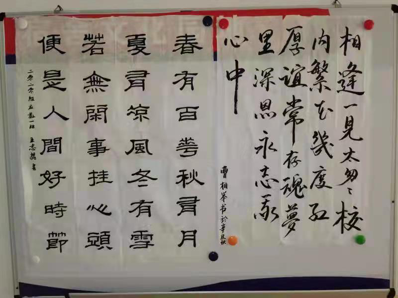 2021年10月20日,beat365官方网站在励行楼大厅开展了以“用翰墨书香,养浩然正气”为主题的2020级书法作品展示活动。本次活动旨在庆祝建党100周年,丰富学生文化生活,挖掘学生特长,展示学生风采,引领青年学生夯实基础,砥砺前行。