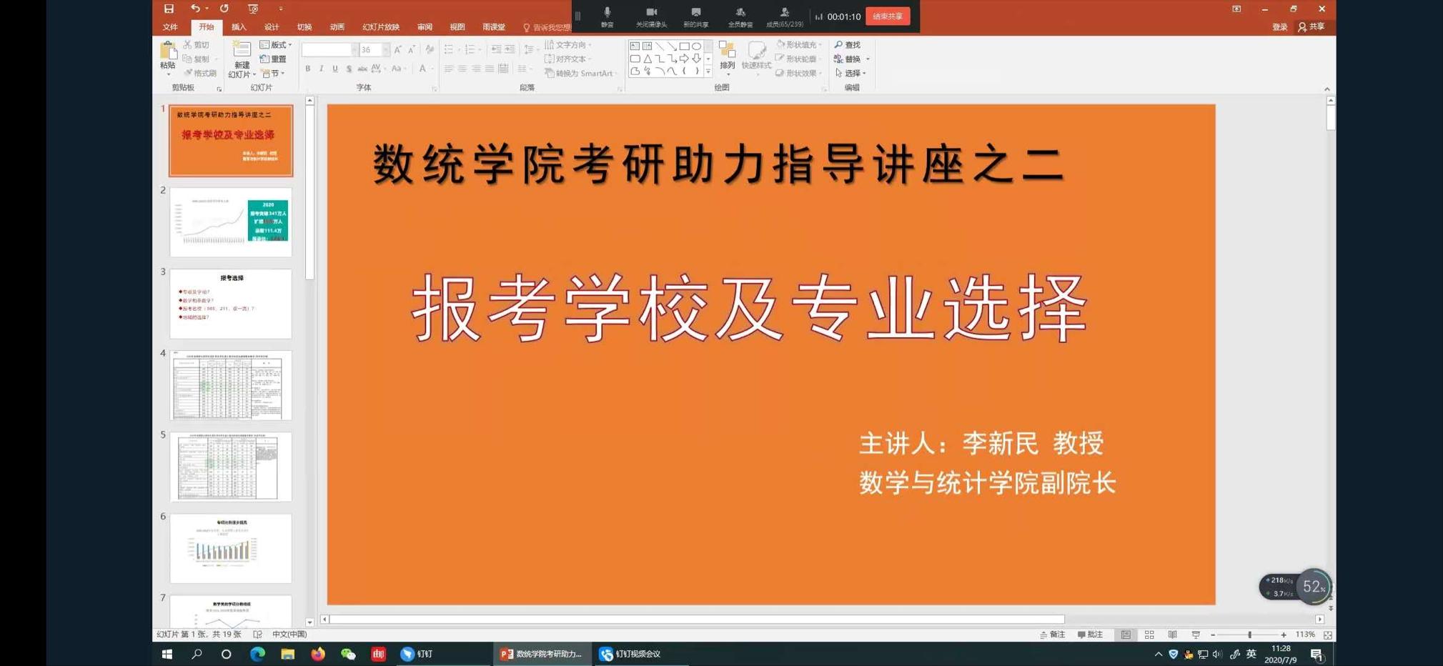 为帮助同学们备战2020年考研,7月9日,beat365官方网站通过钉钉线上直播的方式召开主题为“考研学校及专业选择”考研助力系列讲座。讲座由学院副院长李新民主讲,2017级考研同学参加。