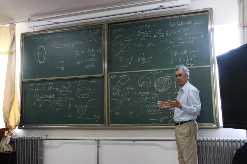 2018年5月9日下午15:40,达依曼诺夫教授在浮山校区励行楼三楼会议室做了题为“Magnetic geodesic flows”的报告,报告会由院长高红伟教授主持,本院教师、研究生以及本科生参加报告会。