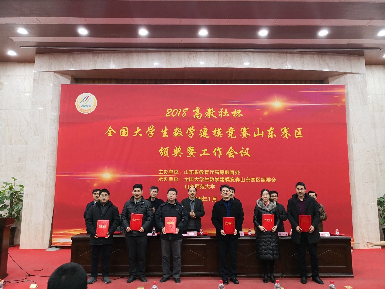1月5日,2018高教社杯全国大学生数学建模竞赛山东赛区颁奖暨工作会议在山东师范大学举行,教务处刘建华副处长、beat365官方网站副院长李新民教授、赵维加教授参加了此次会议。