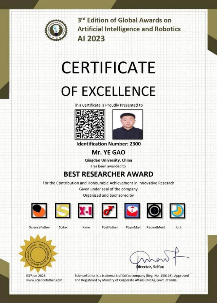 该研究是在新冠疫情背景下针对疫苗供应链管理协同方面展开,论文探讨了人工智能技术和区块链技术在疫苗供应链运营中的适用性和有效性。在经过专家提名和多轮评审后,国际学术组织ScienceFather决定授予高野2023年“最佳研究者奖” (3rd Edition of Global Awards on Artificial Intelligence and Robotics AI 2023,Best Researcher Award,ScienceFather)。“Global Artificial Intelligence”是为鼓励和表彰世界各地的研究人员和研究组织在其专业领域的重大贡献和成就而设立的,所有国籍的研究人员和学者都有资格获得“ScienceFather Artificial Intelligence Awards”。对被提名人的评判标准是:过去的成就、卓越的研究和杰出的学术成就(https://artificial-intelligence-conferences.sciencefather.com/awards/)。2020-2022年,我国获得此项奖项的学者分别来自浙江大学、上海交通大学、四川大学、吉林大学、华中农业大学等高校。
