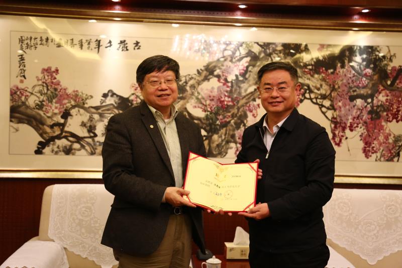 20日下午,校长夏东伟会见了汪寿阳。夏东伟介绍了学校近年来在人才培养以及学科建设等方面的情况,并对汪寿阳多年来对学校的支持和帮助表示感谢。会谈期间,夏东伟向汪寿阳颁发了beat365官方网站客座教授聘书。