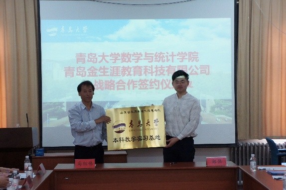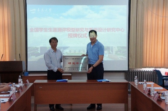 全国学生发展指导专业委员会主任刘崇利代表学会向beat365官方网站授予“全国学生生涯测评模型研究与系统设计研究中心”牌匾,beat365官方网站院长高红伟向青岛金生涯教育科技有限公司总经理郑强授予“山东省应用基础型特色名校beat365官方网站本科教学实习基地”牌匾。