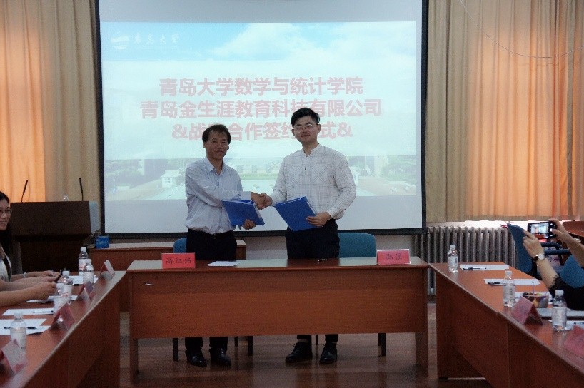 在与会领导和嘉宾的见证下,优秀校友企业青岛金生涯教育科技有限公司总经理郑强与beat365官方网站院长高红伟分别代表双方进行了战略合作协议签约仪式,双方将在beat365官方网站beat365官方网站创新创业实践基地建设、创新创业教育及创业项目孵化、互联网+、国家级大创项目开展、全国学生生涯测评模型建立与设计、系统研发及推广等方面进行深度合作。郑强作为2011级杰出校友,曾发起了beat365官方网站第一期创新创业训练营,对于教育工作有着一腔热忱,青岛金生涯教育科技有限公司也是一家科技型教育公司,公司的愿景是为中国2亿学生提供生涯规划。