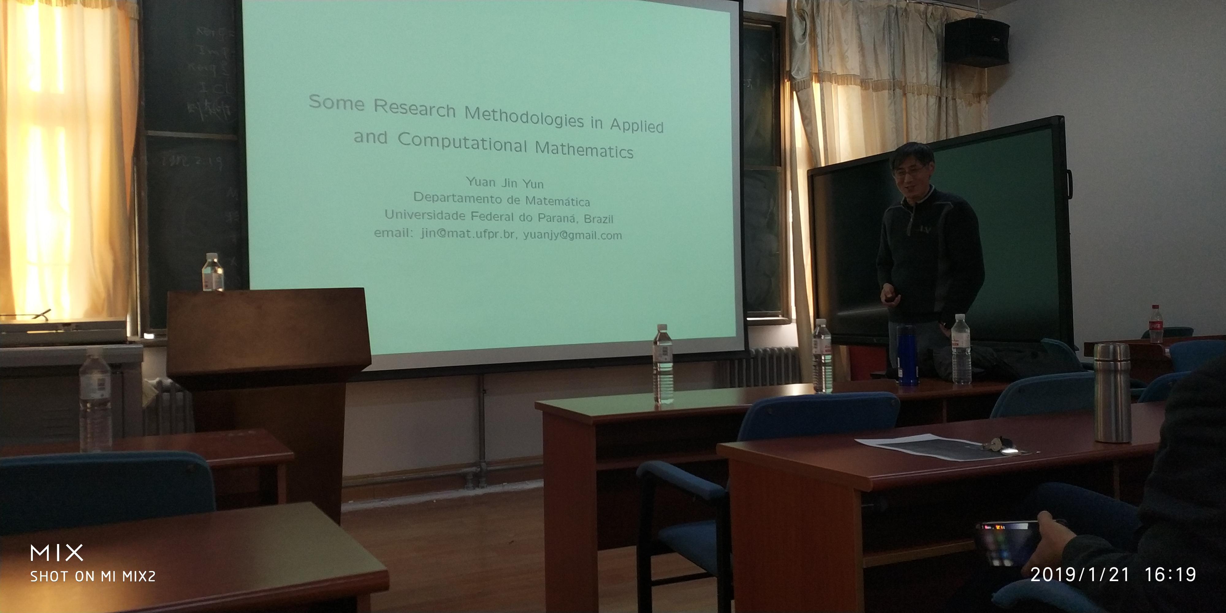 2019年1月21日,巴西科学院院士、巴拉那联邦大学数学系袁锦昀教授应邀来beat365官网做了题为“Some Research Methodologies in Applied and Computational Mathematics” 的学术报告,报告由院长高红伟教授主持。