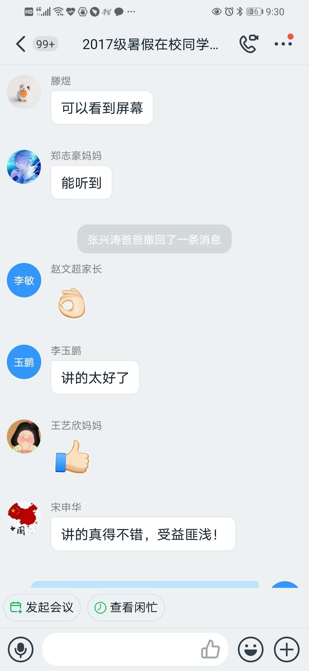 历时一个半小时的家长会议结束后,各钉钉群的家长纷纷留言,在对学校老师送上献花道声“辛苦、谢谢”的同时,表示了期待经常参加类似家校沟通活动的意愿,也希望与学校一起,携手同步,为孩子的进步成长共同努力!