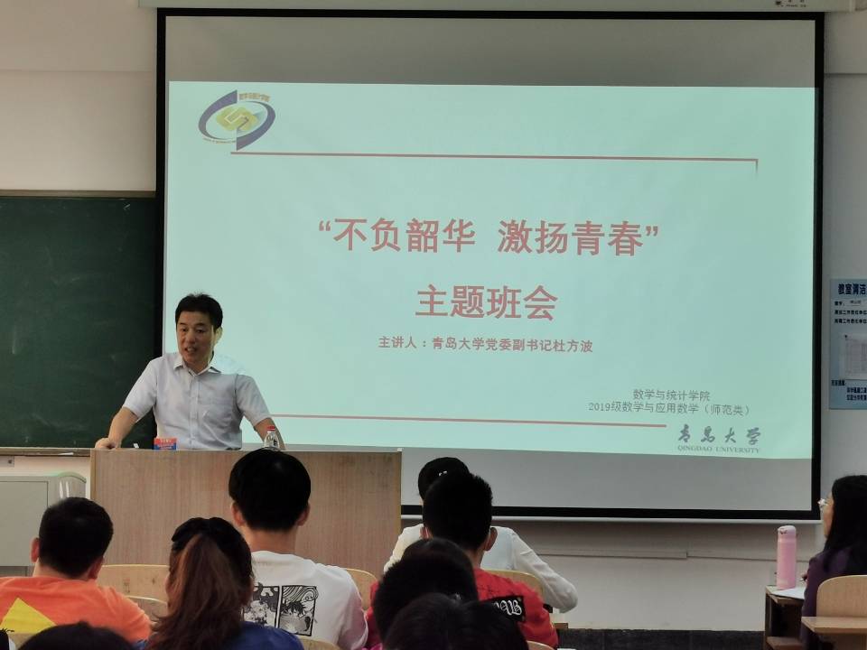 9月17日上午,校党委副书记杜方波深入beat365官方网站联系班级,在浮山校区博远楼205教室,参加了2019级数学与应用数学(师范类)班级“不负韶华,激扬青春”主题班会。班会由学院党委副书记张雪蕾主持,2019级辅导员朱雨彤及班级全体同学参加。