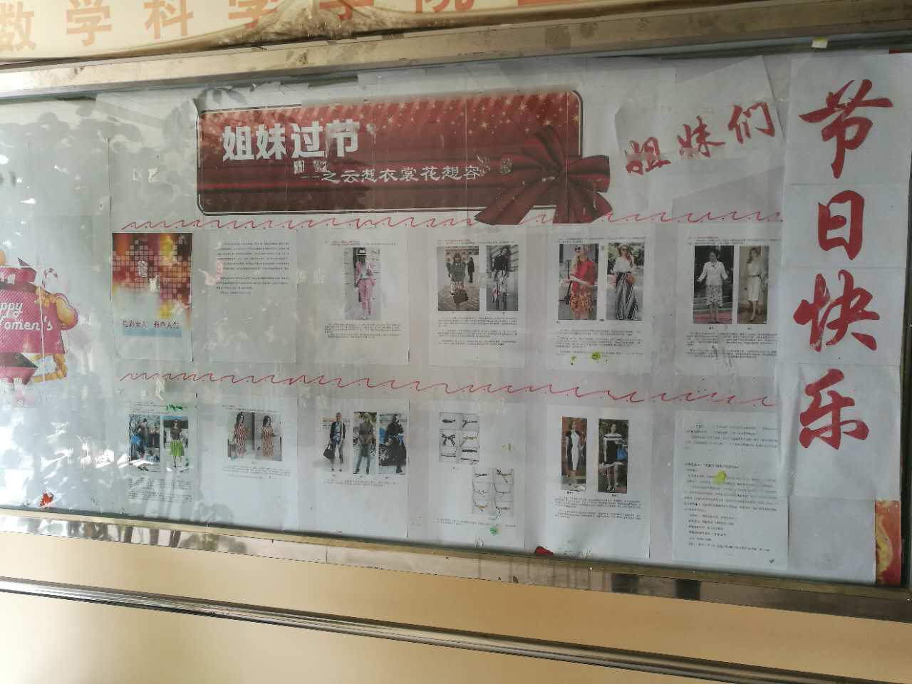 充分利用学院宣传栏,开展三八宣传活动。张贴“姐妹过节之云想衣裳花想容”女性服饰搭配小知识,女教职工们不仅提高了审美能力,而且学会了如何展现自我魅力,使她们在工作中、生活中增强了自信。