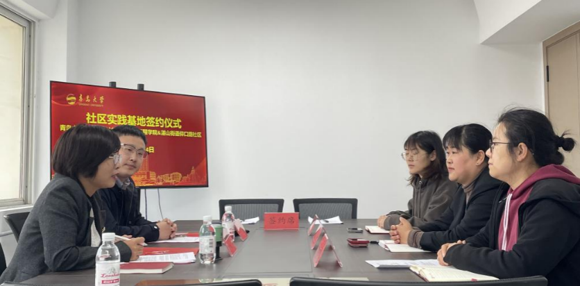 最后,朱雨彤、刘董代表学院团委同仰口路社区团总支签订大学生社区实践基地共建协议书,并举行社区实践基地挂牌仪式。