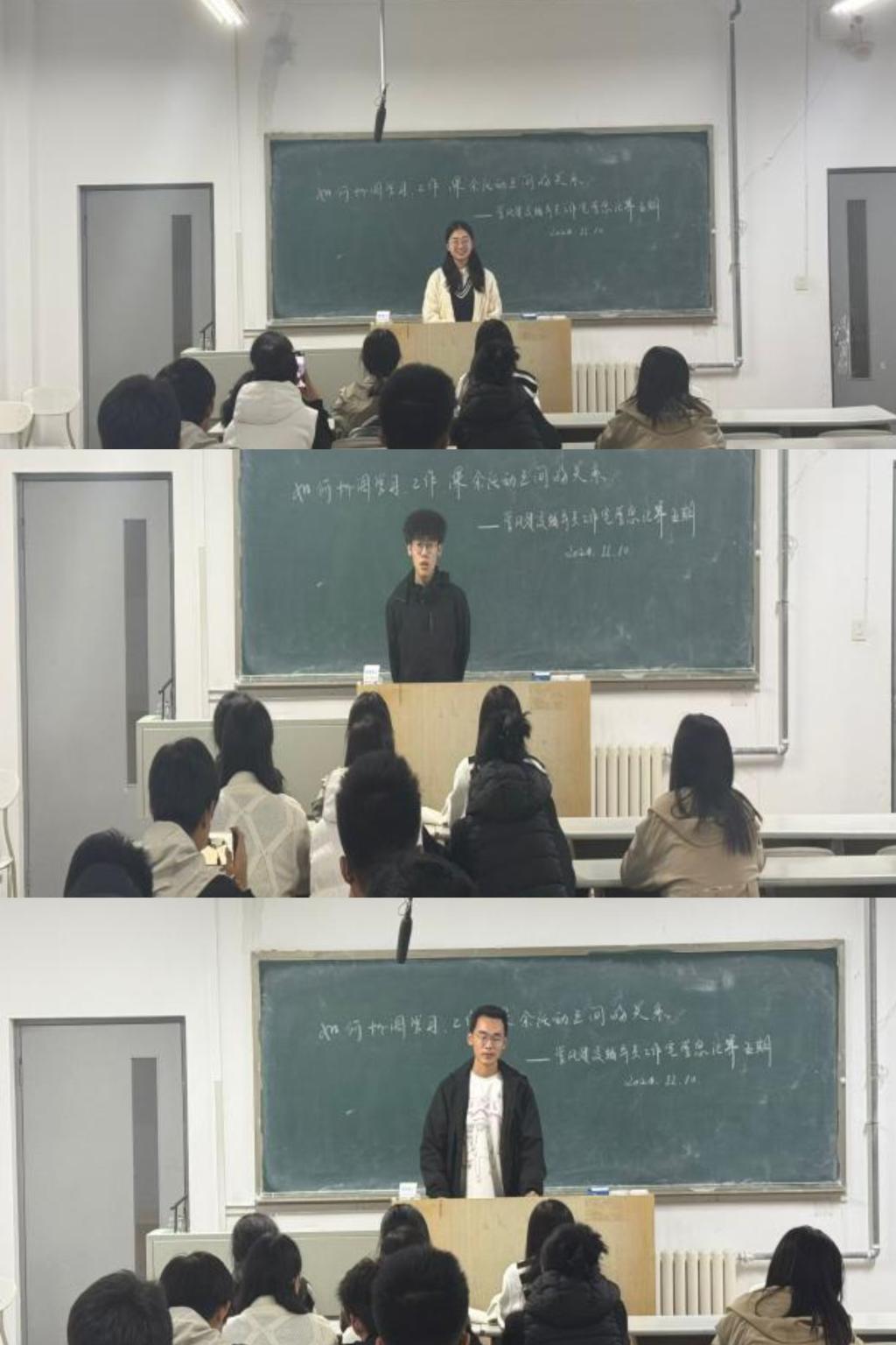 接着是来自竞赛引航员史飞扬、学业引航员赵浚屹和龙万庆针对“如何协调学习,工作和课余活动之间的关系”这一主题进行经验分享。